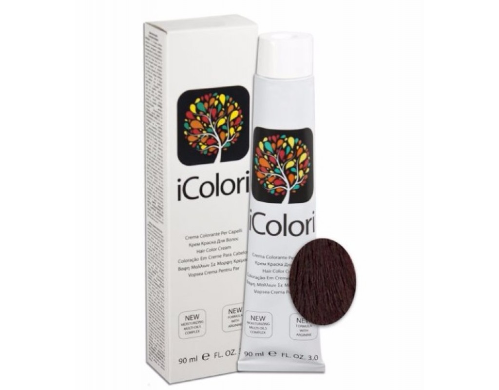 iCOLORI plaukų dažai su argininu, aliejų kompleksu, sumažintu amoniako kiekiu profesionaliam naudojimui (90 ml) Nr. 5.22 CASTANO CHIARO VIOLA INTENSO