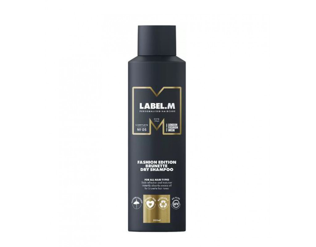 Label.M Dry Brunette sausas šampūnas atgaivina plaukus tarp plovimų šampūnu ir yra skirtas specialiai tamsiaplaukėms. Jo sudėtyje yra naudojamas natūralus krakmolas riebalams išskaidyti. Taip pat Label.M Dry Brunette sausas šampūnas suteikia plaukams matinę išvaizdą ir švelnumo.