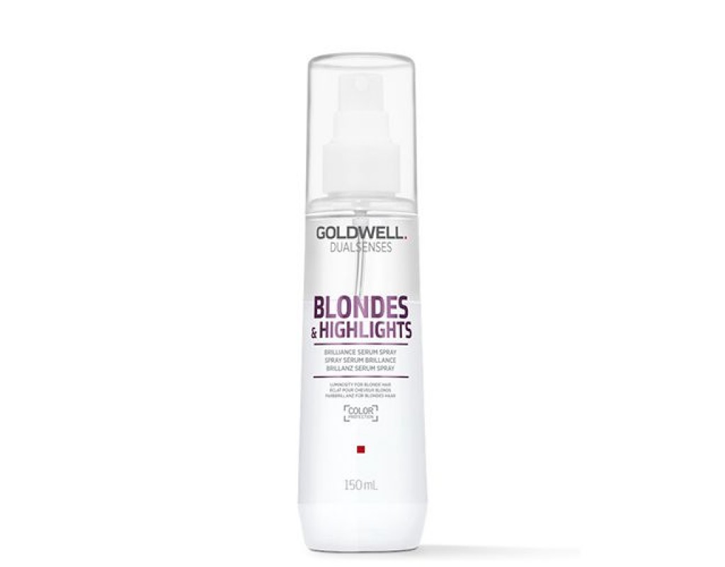 Goldwell Blondes&Highlights 150ml tai blizgesio suteikiantis purškiklis šviesiems ir sruogelėmis šviesintiems plaukams. Šis išskirtinis ir profesionalus purškiklis idealiai rūpinasi plaukais, palengvina besiveliančių plaukų iššukavimą ir išlaiko šviesių ar sruogelėmis dažytų plaukų spalvą. Inovatyvi spalvos blukimą stabdanti „Fade Stop Formula“ formulė yra praturtinta ingredientais, neutralizuojančiais geltonus pigmentus plaukuose, kurie sumažina spalvos blukimą iki minimumo ir intensyvina spalvos ryškumą. Šios formulės dėka, plaukams iš karto suteikiamas šaltas atspalvis. Šis profesionalus plaukus maitinantis ir gaivinantis purškiklis yra sukurtas naudojant specialų „MicroPROtec“ kompleksą, kuris efektyviai užkerta kelią pleiskanų atsiradimui. Naujoji „Luminescine“ technologija pasirūpins, kad Jūsų dažyti plaukai įgautų nepakartojamo žvilgesio ir visapusę apsaugą. Goldwell Blondes&Highlights purškiklis praturtintas, vitaminais ir antioksidantais apsaugo plaukus nuo kenksmingų aplinkos veiksnių, tokių kaip saulė, sūrus vanduo ar chloras, sukuria ant plaukų nematomą, šviesą atspindintį šydą, todėl šviesinti ir sruogelėmis dažyti plaukai įgauna nepakartojamo spindesio. Purškiklis palengvina plaukų iššukavimą, apsaugo nuo karščio, saugo spalvą nuo išblukimo. Šis nuostabus purškiklis suteiks bet kokiems šviesiems plaukams nuostabaus žvilgesio, išryškins šviesių plaukų grožį.